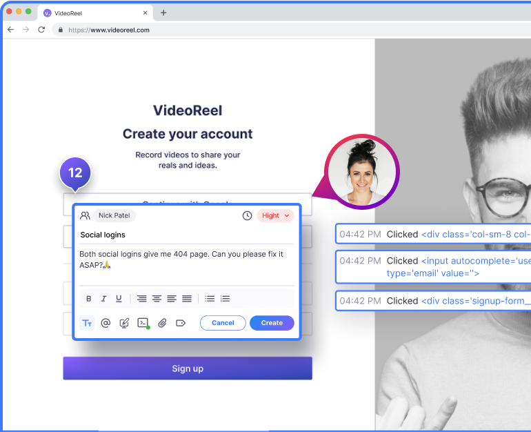 Your team and clients can simply point, click, and report issues or request changes directly on web elements, right in their browser.